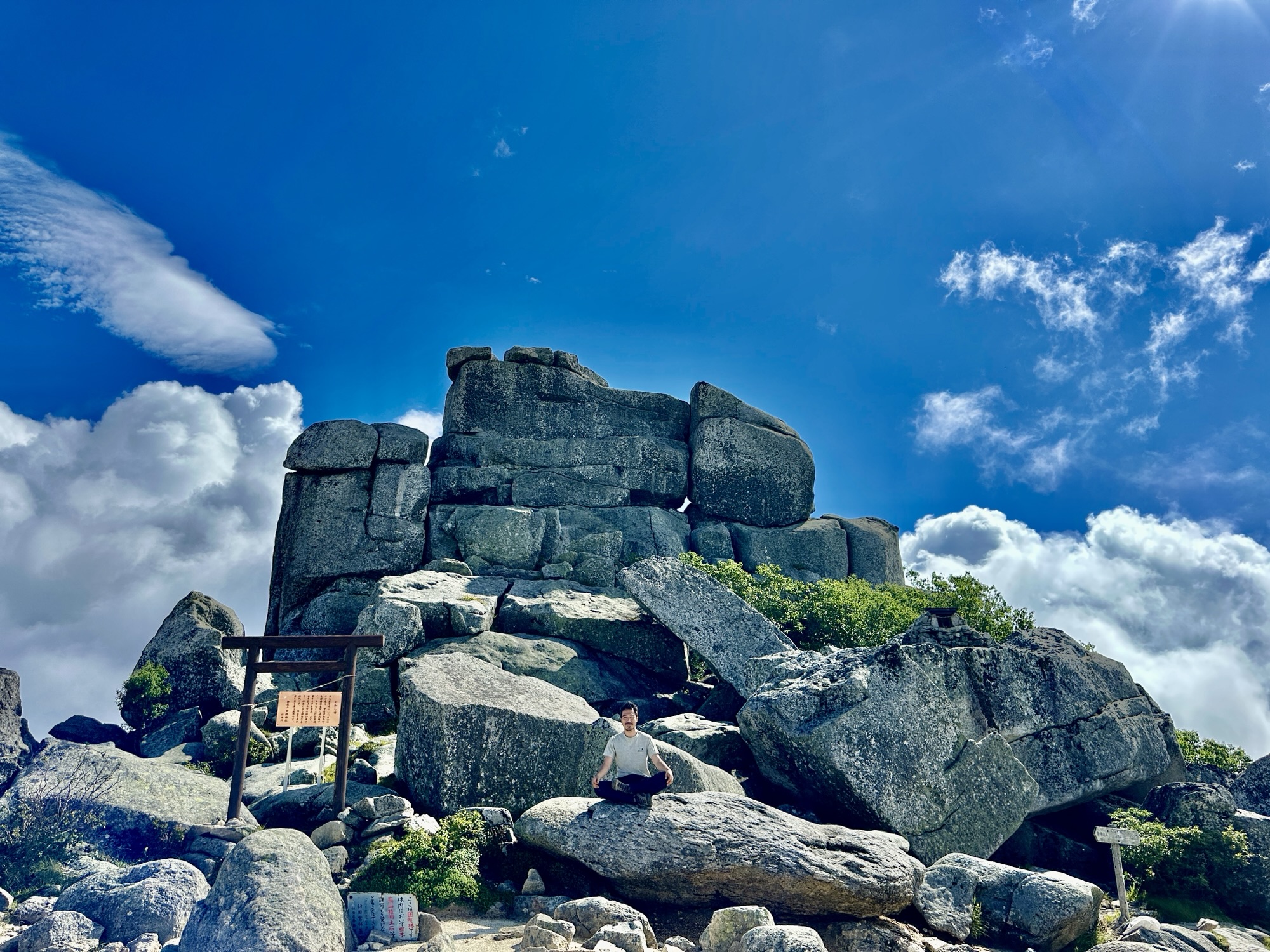 その大神が降り立つ標高2599mの山頂には、自然に出来たとは到底思えない世界最強クラスの巨大磐座積み木の五丈岩がある。