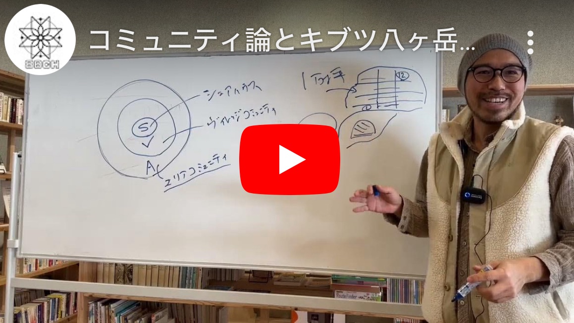 キブツ八ヶ岳は、基本的に住まいはバラバラで個々が自立しながら繋がっている”エリアコミュニティ”であり、これから同じ敷地内(ヴィレッジ)や同じ施設内(シェアハウス)も包括していく村づくりが始まる。