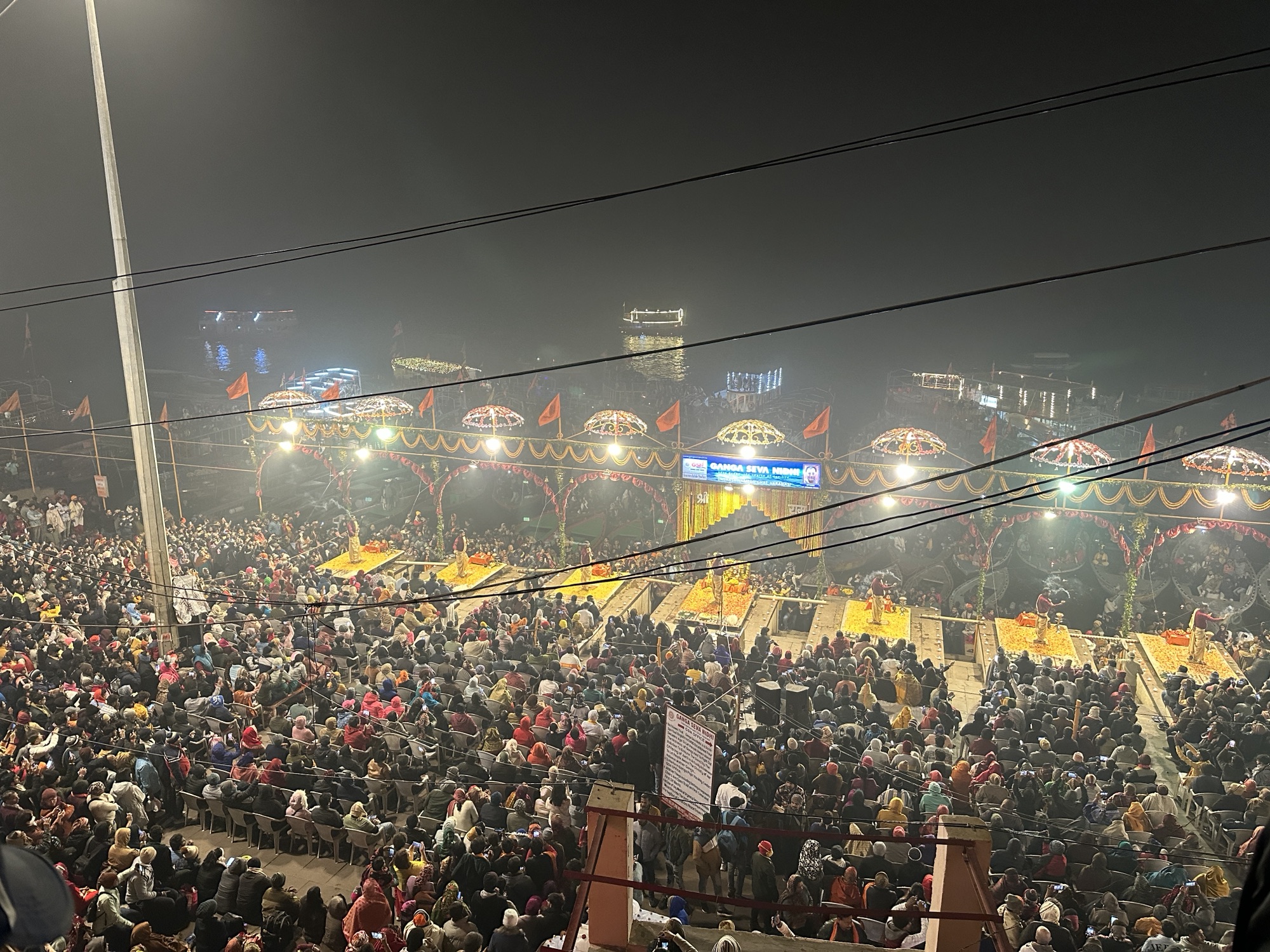 3000年以上の歴史を持つシヴァ神の聖都バラナシ(ベナレス)合流後、最初に向かったのは、ガンジス川のほとりで毎晩開催されるのヒンドゥー教の礼拝”プージャ”の見学。